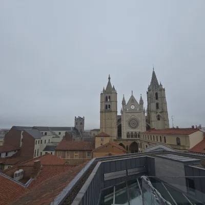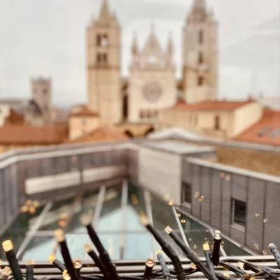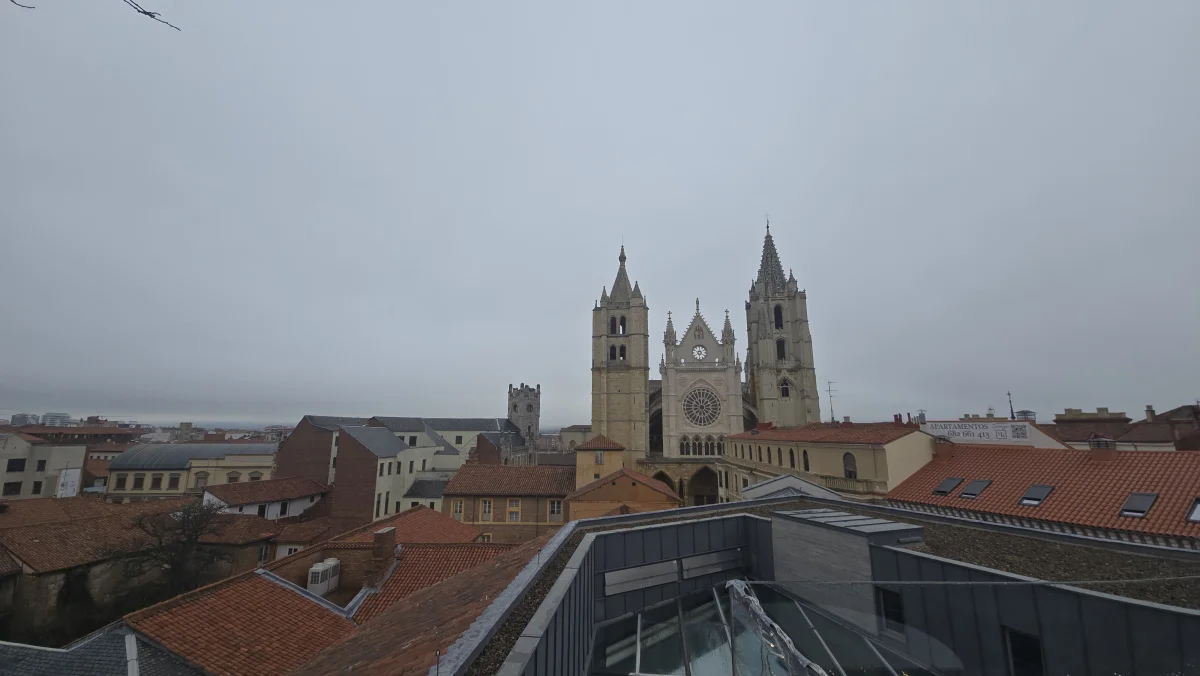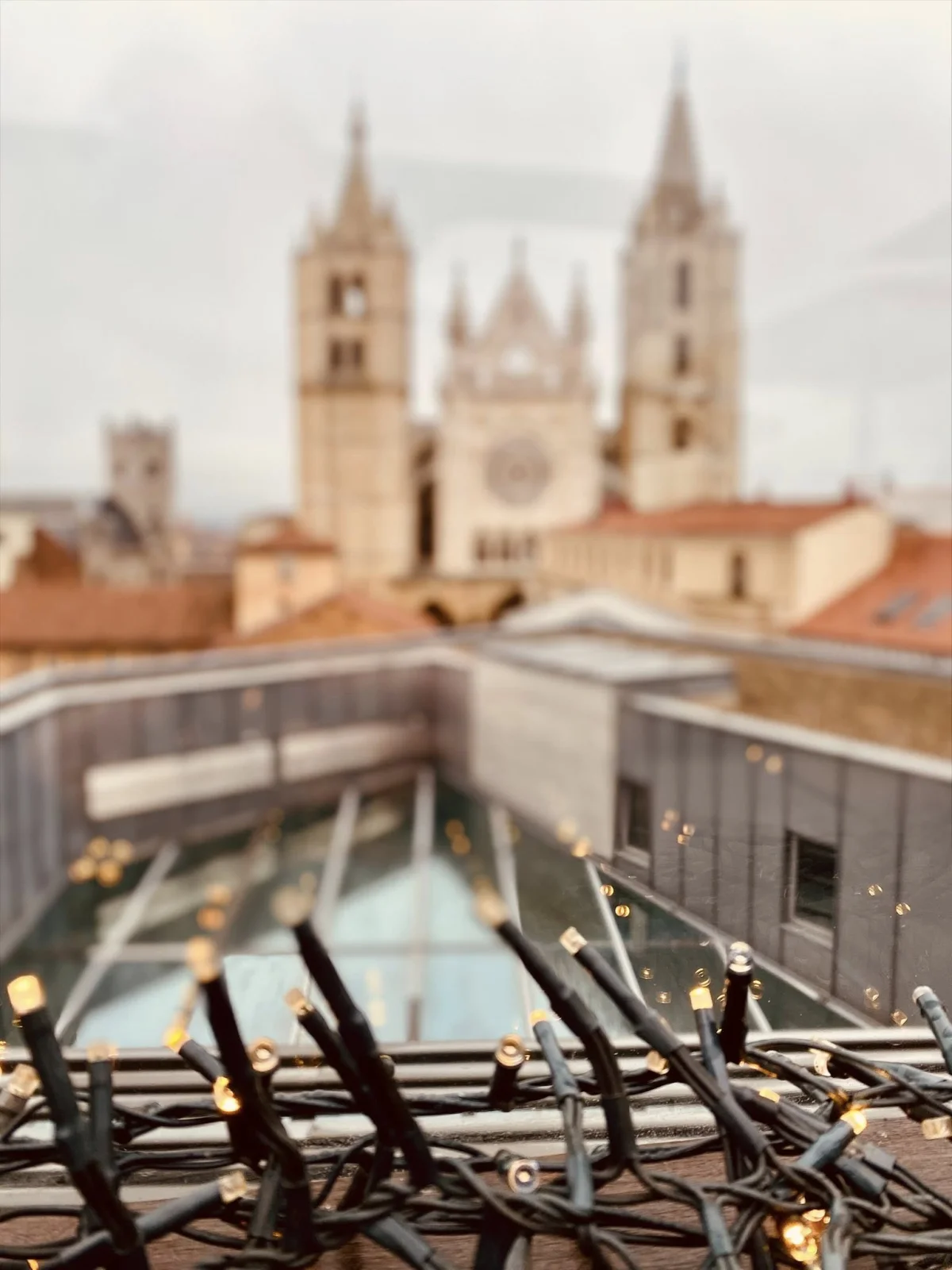 Las vistas a la catedral de León, uno de los referentes del gótico español, aportan una dimensión adicional a la estancia. La posibilidad de contemplar este enclave histórico desde una perspectiva elevada transforma la comida en un ejercicio de contemplación, donde la arquitectura y la gastronomía dialogan de forma natural.